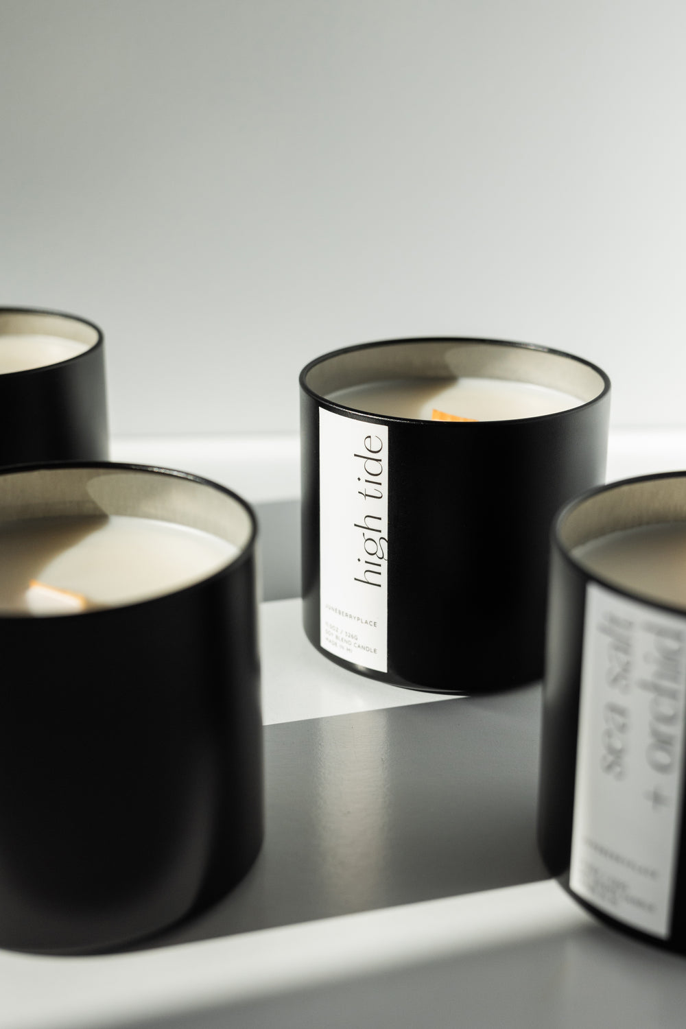 High Tide Candle in matte black vessel by juneberryplace home fragrances